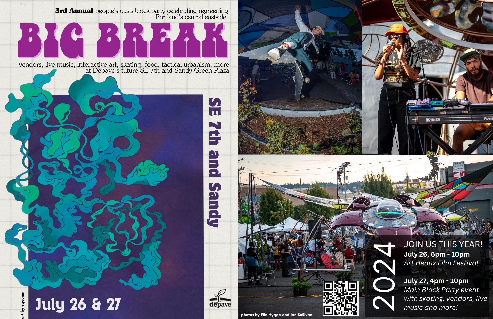 Join CEIC and Depave on Thursday, July 25th for a litter clean-up event in preparation for Depave's first community event of the season! Depave's annual BIG BREAK BLOCK PARTY aims to celebrate regreening Portland's central eastside by bringing vendors, live music, interactive art, skating, food, tactical urbanism, and more into the street and for the people on July 27 from 4pm to 10 pm.