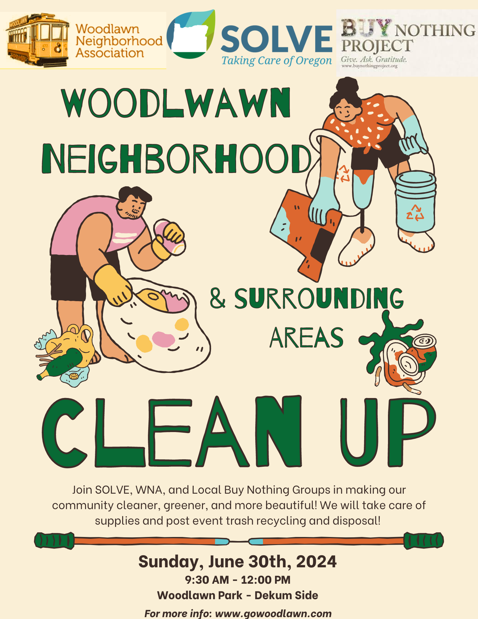 Woodlawn Neighborhood Association and Local Buy Nothing Groups are teaming up on the day after our Woodlawn, King, Sabin Dumptser Day to do a neighborhood and surrounding areas clean up event.