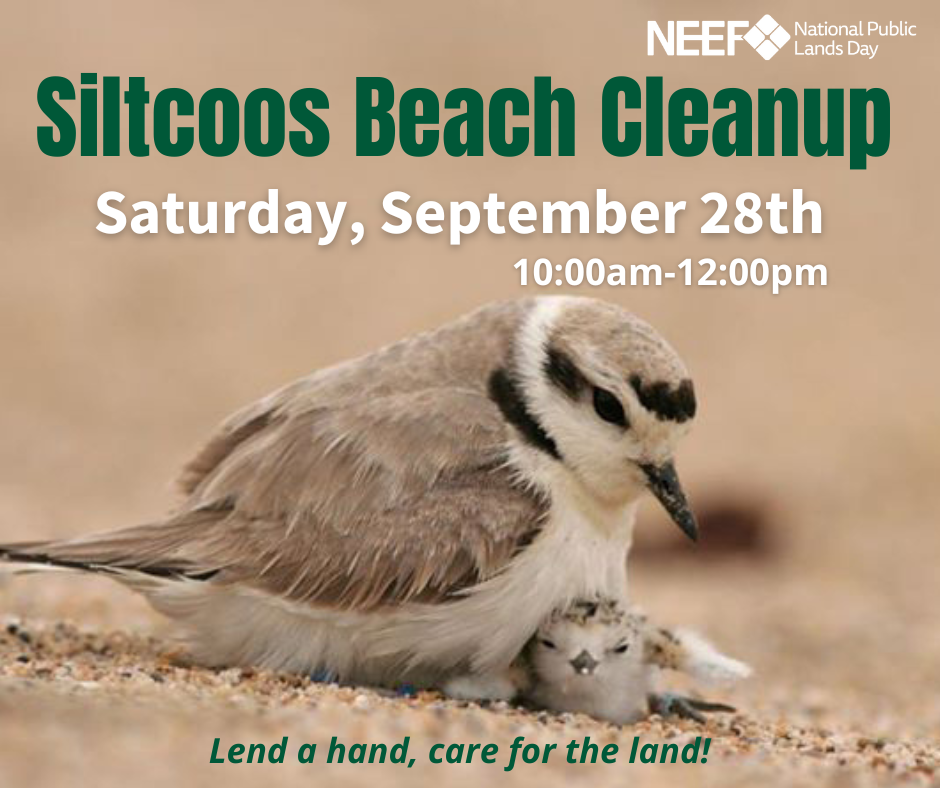 Celebrate National Public Lands Day with the U.S. Forest Service and help protect the western snowy plovers! Please join us for a beach cleanup on Satuday, September 28th at Siltcoos Beach Day Use Area, which is a critical nesting area for plovers from mid-March to mid-September.