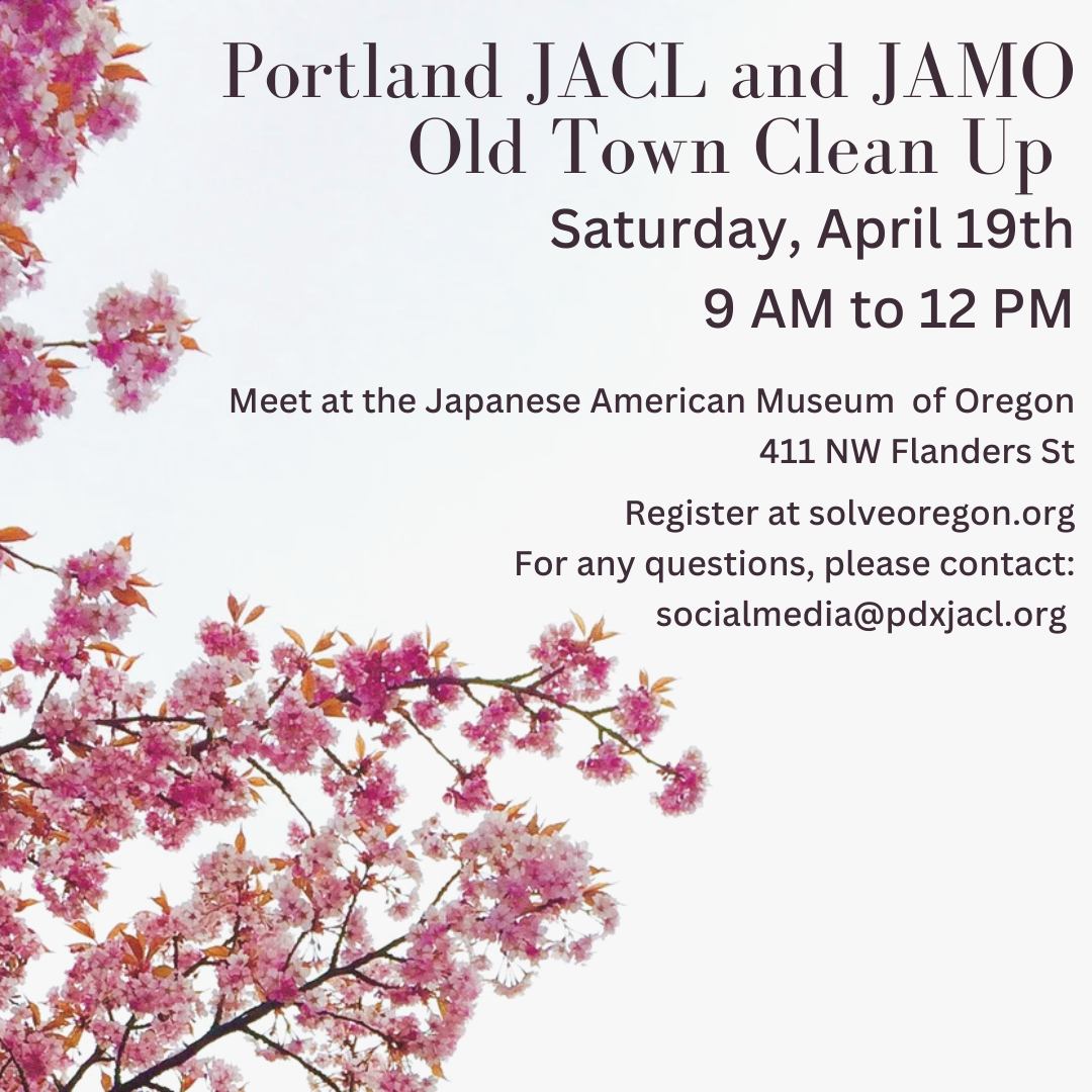 Come join Portland Japanese American Citizens League and the Japanese American Museum of Oregon in cleaning up Old Town