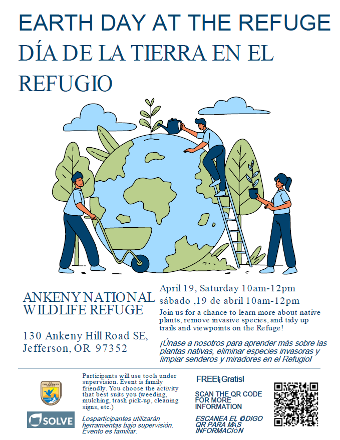 Join us for a litter cleanup and invasive species removal event where we’ll beautify the Ankeny Hill Nature Center and Ankeny National Wildlife Refuge by removing trash, removing invasive plants, and spreading wood chips to prevent future invasive species from growing. This is a chance to learn more about native plants, remove invasive species, and tidy up trails and viewpoints on the Refuge! Event will involve walking, kneeling, wheeling heavy items, and more.